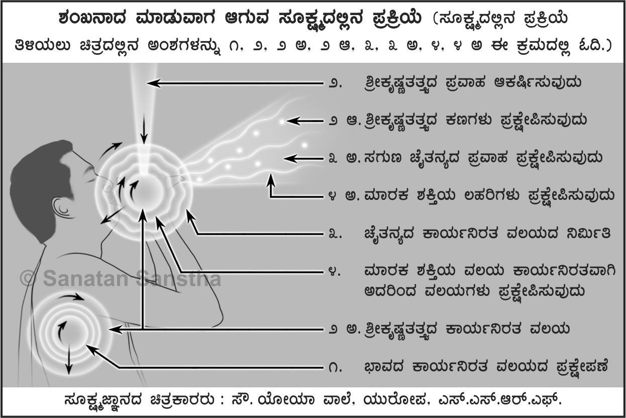 ಶಂಖನಾದದಿಂದ ವಾತಾವರಣದಲ್ಲಿನ ರಜ-ತಮ ಕಣಗಳ ವಿಘಟನೆಯಾಗುತ್ತದೆ: ಶಂಖನಾದದಿಂದ ಹೊರಬೀಳುವ ನಾದಶಕ್ತಿಯಿಂದಾಗಿ ಊರ್ಧ್ವ ದಿಕ್ಕಿನಿಂದ ಬರುವ ಬ್ರಹ್ಮಾಂಡದಲ್ಲಿನ ಸೂಕ್ಷ್ಮತರ ಲಹರಿಗಳು ಜಾಗೃತವಾಗಿ ಕಡಿಮೆ ಸಮಯದಲ್ಲಿ ರಜ-ತಮ ಕಣಗಳ ವಿಘಟನೆಯಾಗುತ್ತದೆ.